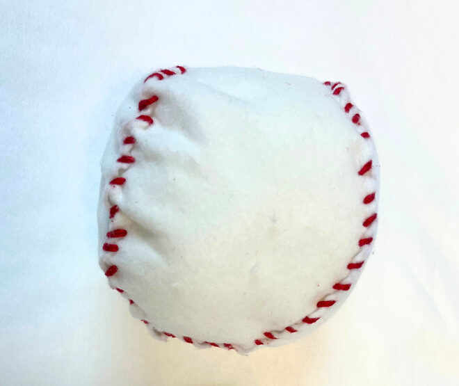 しかし、材質の都合上そのままお納めすることが難しかったため、フェルトを用いて、お棺に入れることのできる野球ボールをお作りしました。