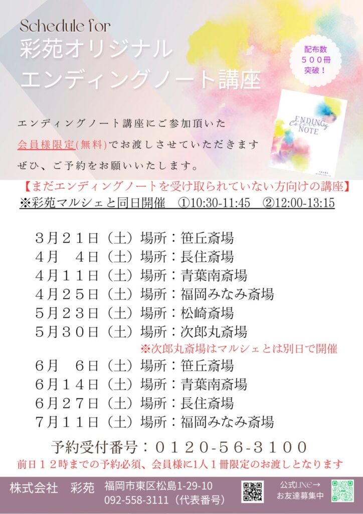 2026年3月~7月に開催するエンディングノート講座の予定表を公開いたしました。