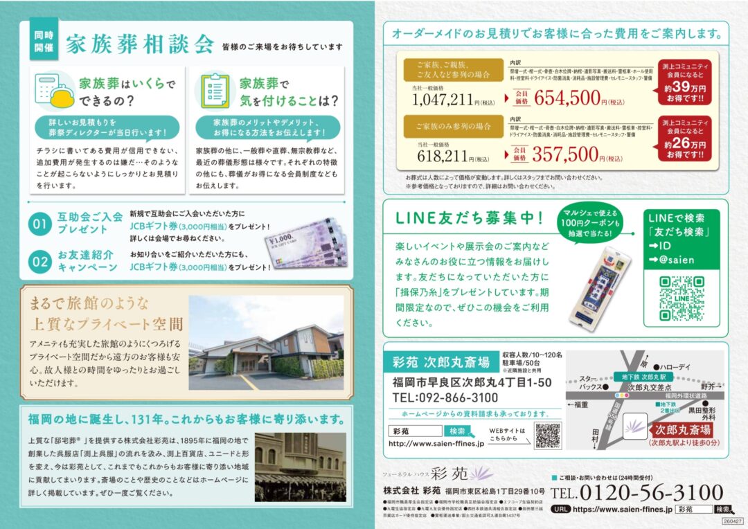 福岡市早良区 次郎丸斎場のマルシェ&家族葬相談会の詳細【2026年5月9日(土)】