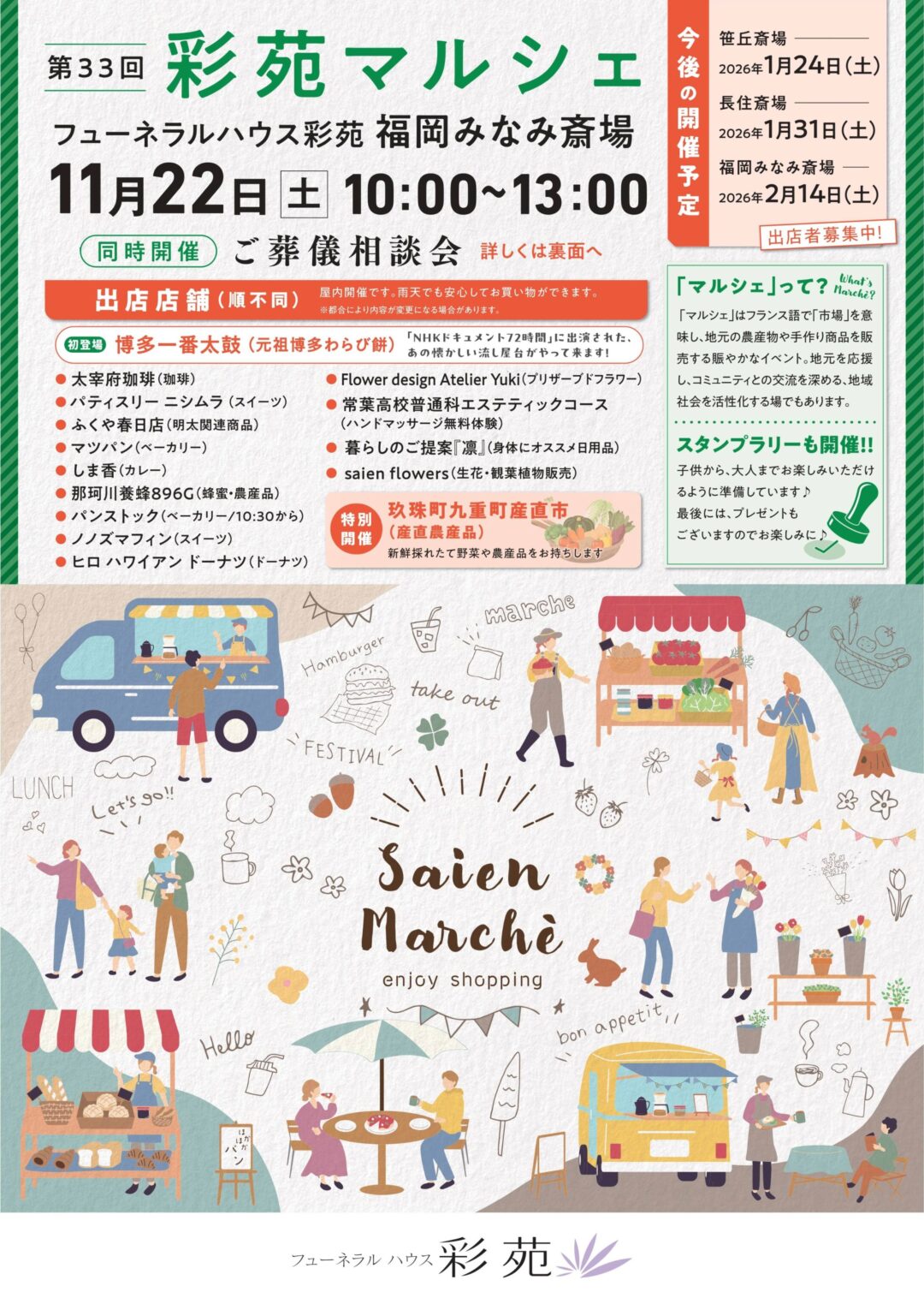 2025年11月22日に、福岡みなみ斎場にてマルシェ&ご葬儀相談会を開催します。