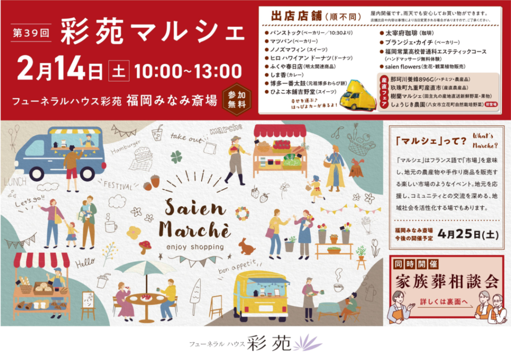 福岡みなみ斎場のマルシェ&家族葬相談会の詳細【2026年2月14日】
