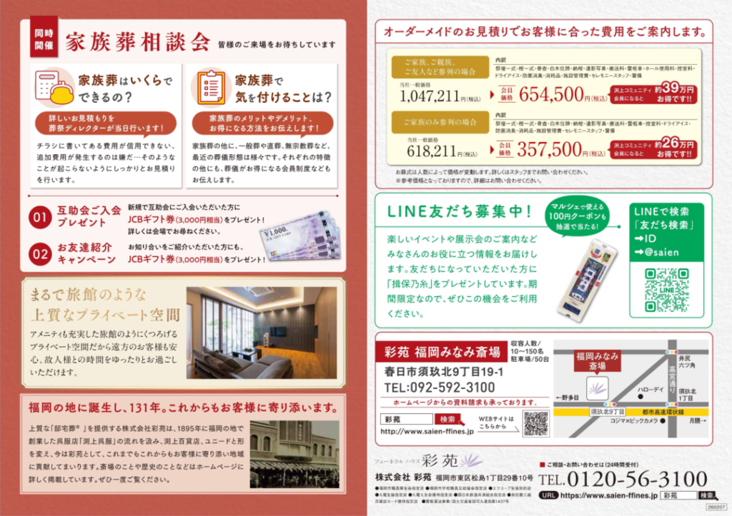 【2026年2月14日】福岡みなみ斎場でマルシェ&家族葬相談会を開催します【春日市須玖北】