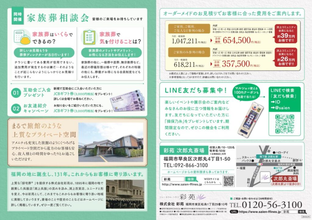 福岡市早良区 次郎丸斎場のマルシェ&家族葬相談会の詳細【2026年3月7日(土)】