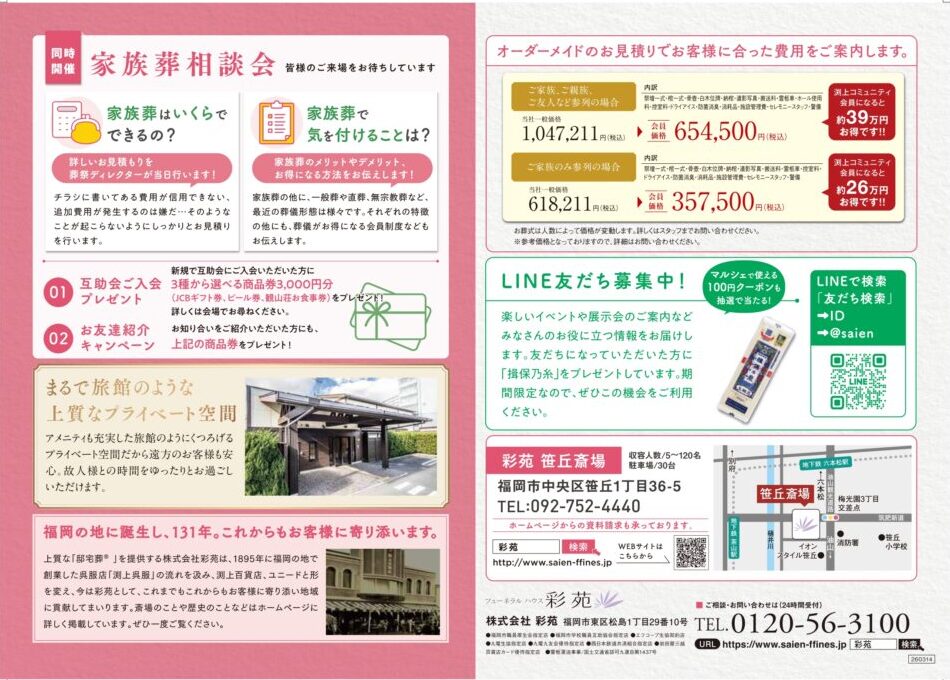 福岡市中央区 笹丘斎場のマルシェ&家族葬相談会の詳細【2026年3月21日(土)】