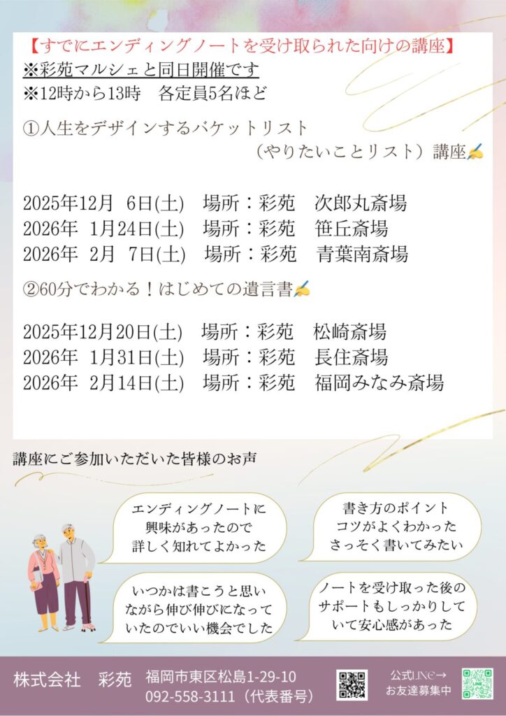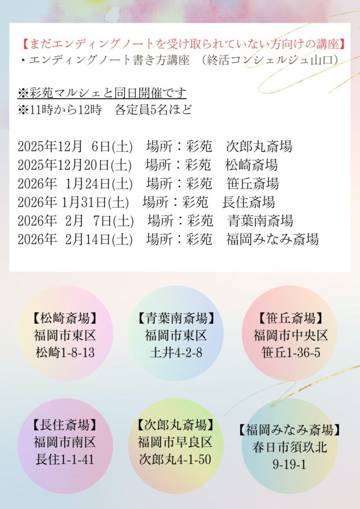 【会員様限定】12月~2月のエンディングノート講座 ご予約はこちら